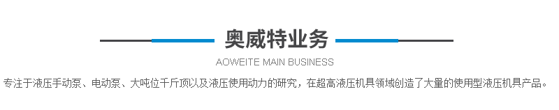 德州奧威特液壓機械有限公司有多年的超高壓元件及設(shè)備制造經(jīng)驗,依托德州精湛的制造工藝和不斷創(chuàng)新的技術(shù),專注于液壓手動泵、電動泵、大噸位千斤頂及拆裝科技以及液壓使用動力的研究,在超高液壓機具領(lǐng)域不斷研發(fā),創(chuàng)造了大量的使用型液壓機具產(chǎn)品。